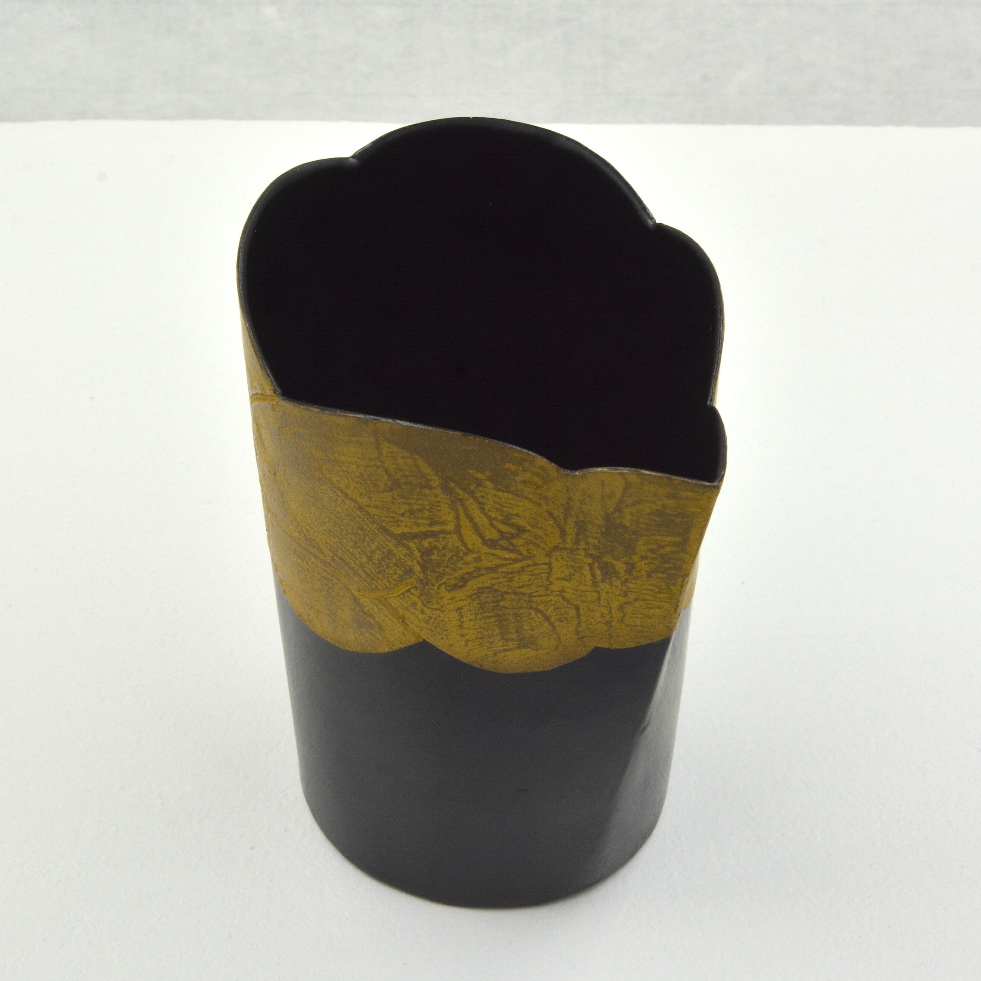 この器は薄い麻布を6枚貼り重ねて形をつくり、その上に下地を3回、さらに漆を複数回塗り重ねて仕上げています。