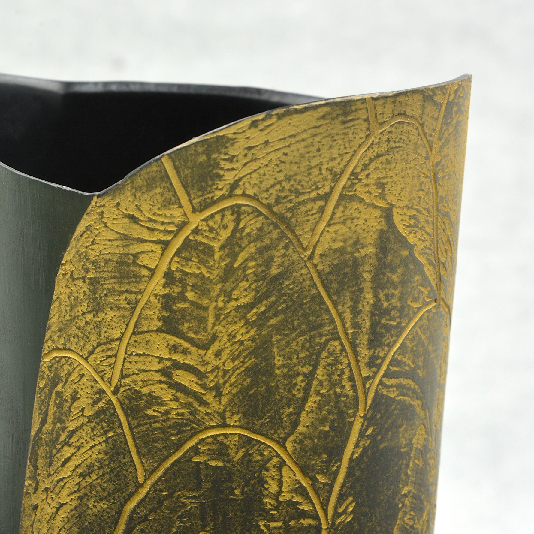 外側は持った時に滑りにくい独自の質感です。そびえ立つ山のデザインは金粉で仕上げ、内側はシンプルにマットな黒漆で仕上げています。