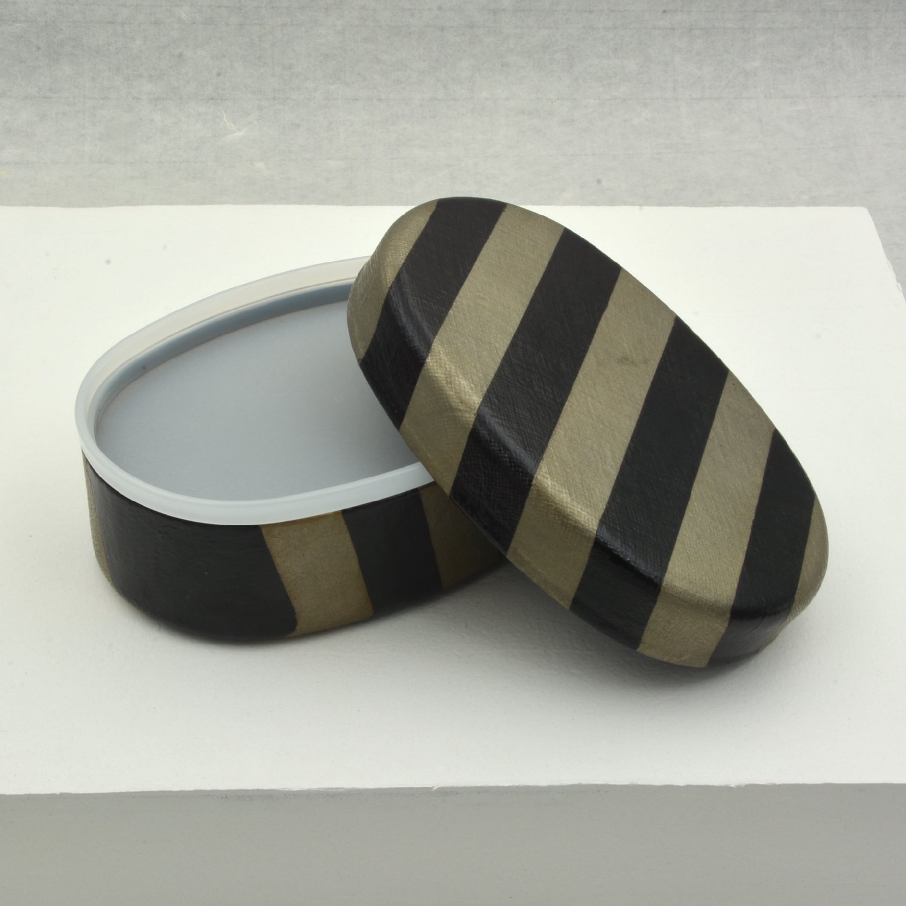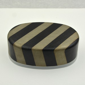 アルミ小判弁当箱に漆芸技法で布目と蒔絵を施し、アルミ弁当箱にありがちな素っ気無く冷たい印象に変化を与えました。内部は黒漆による布目仕上げ。透明樹脂による中蓋がありますので、汁漏れもありません。漆器ですがアルミ胎ですので、そのまま保温機や冷蔵庫に入れることができます。