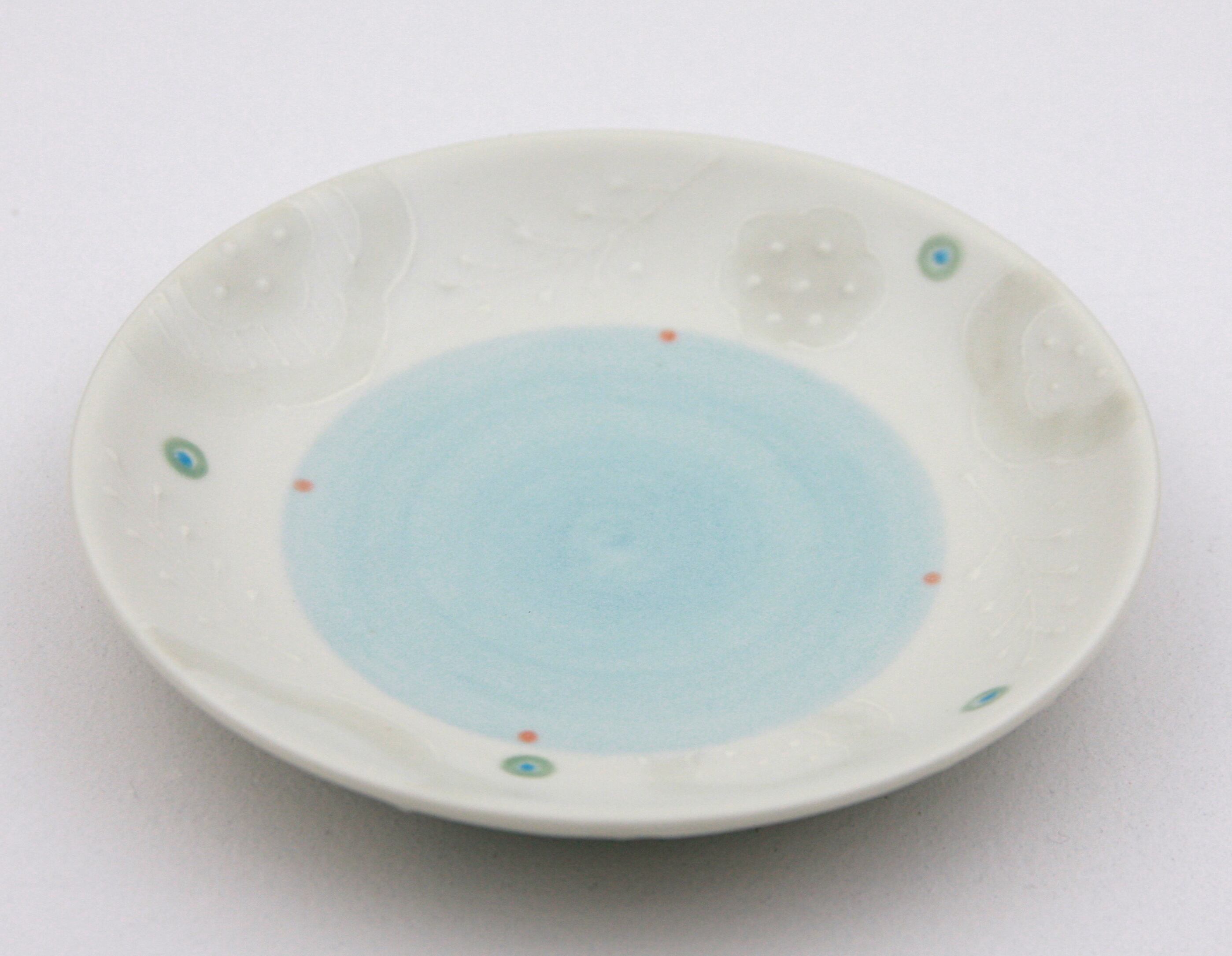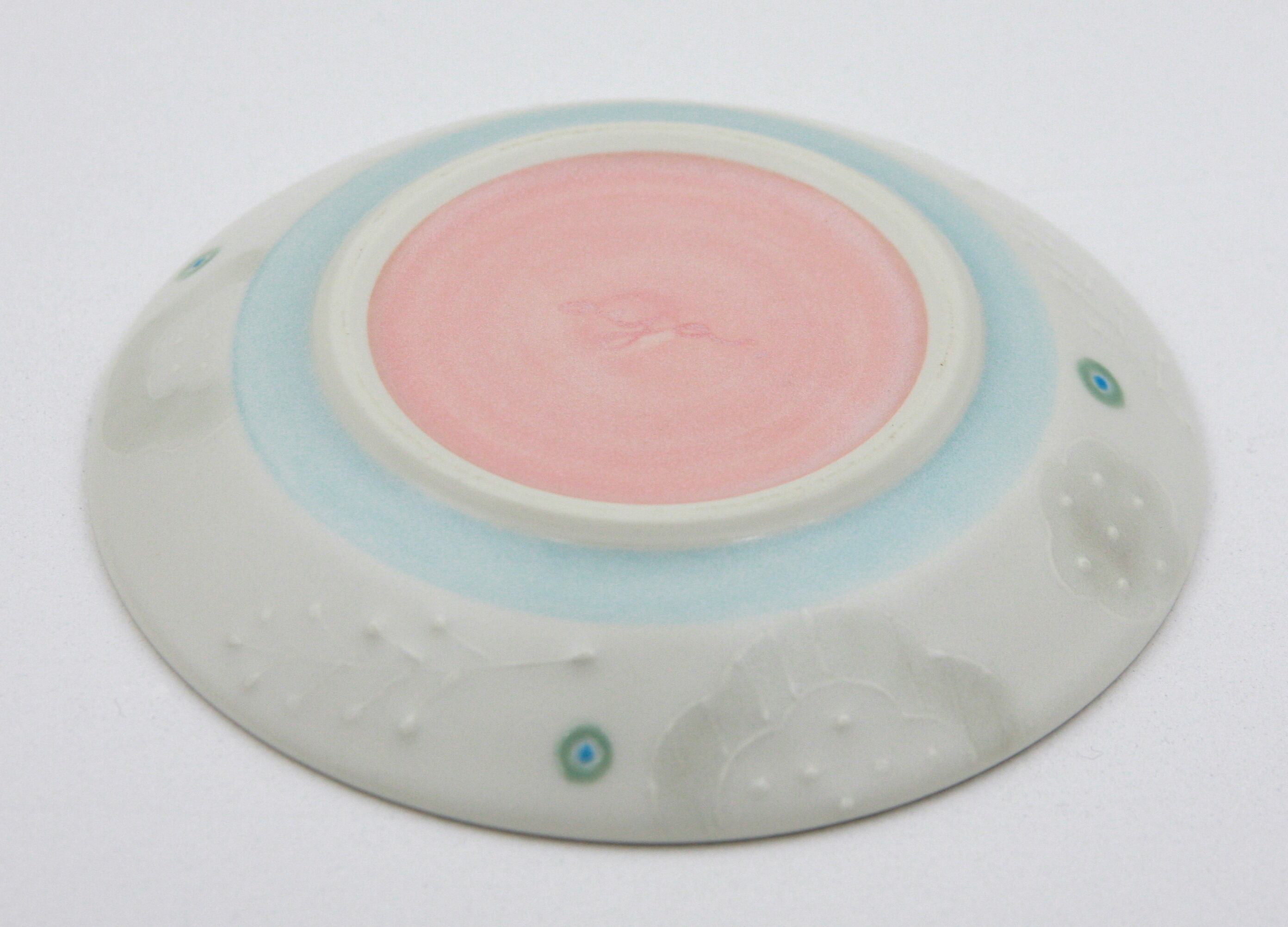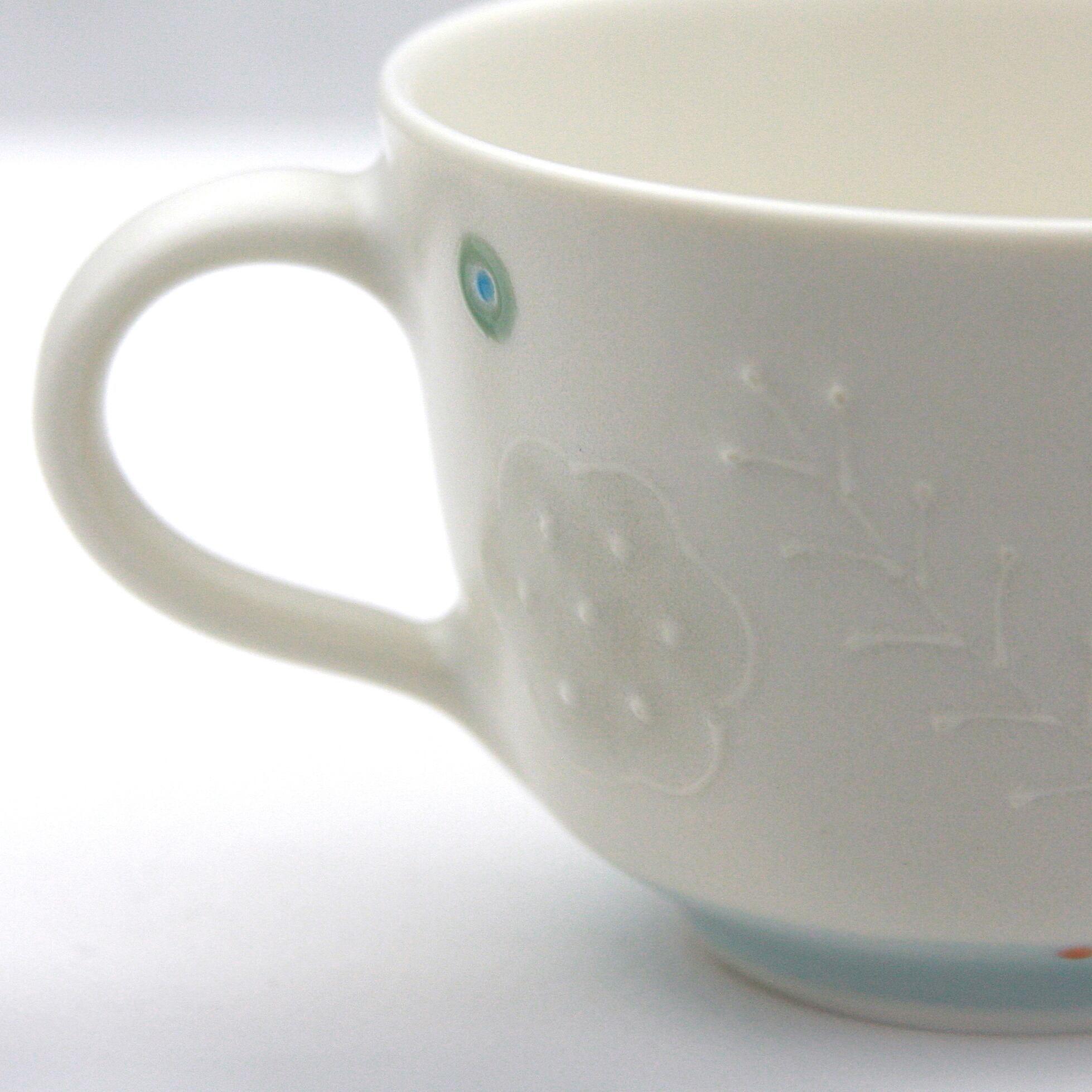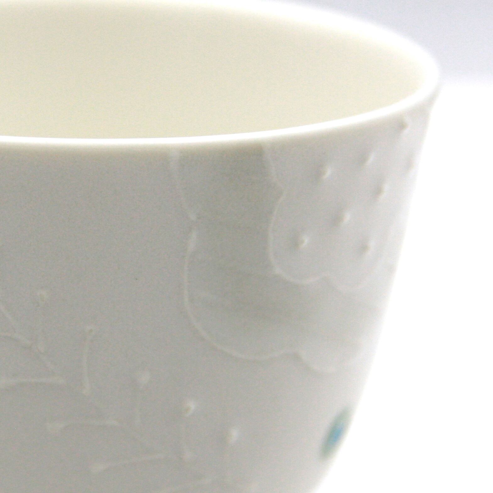 下絵付けで淡いグレーと水色を基調に彩色しています。花の模様ですが雪をイメージするような冬っぽさもあり、夏にも涼しげな色合いで季節を問わずお使いいただけます。時にはソーサーを小皿として、お菓子とともにティータイムを彩ります。