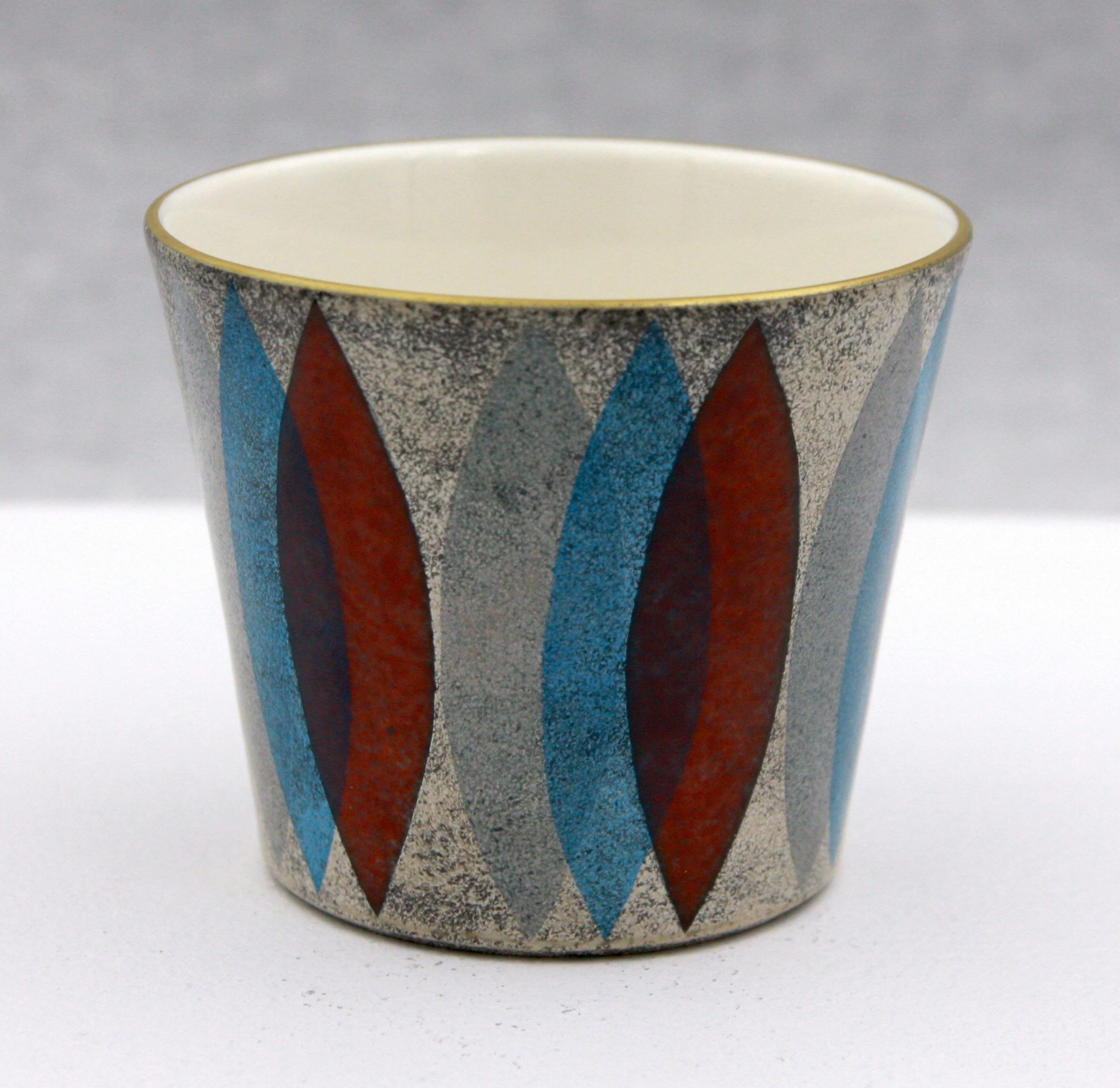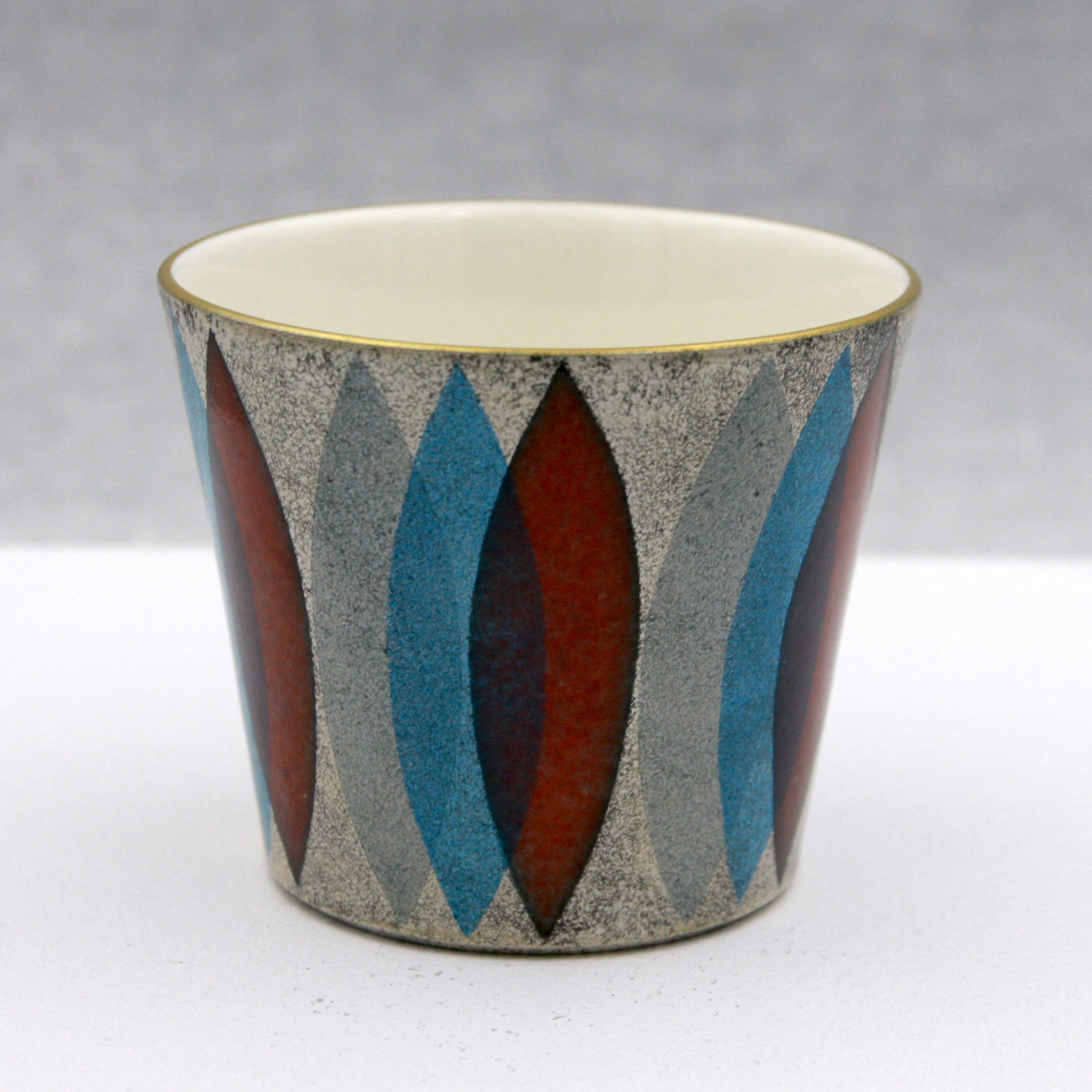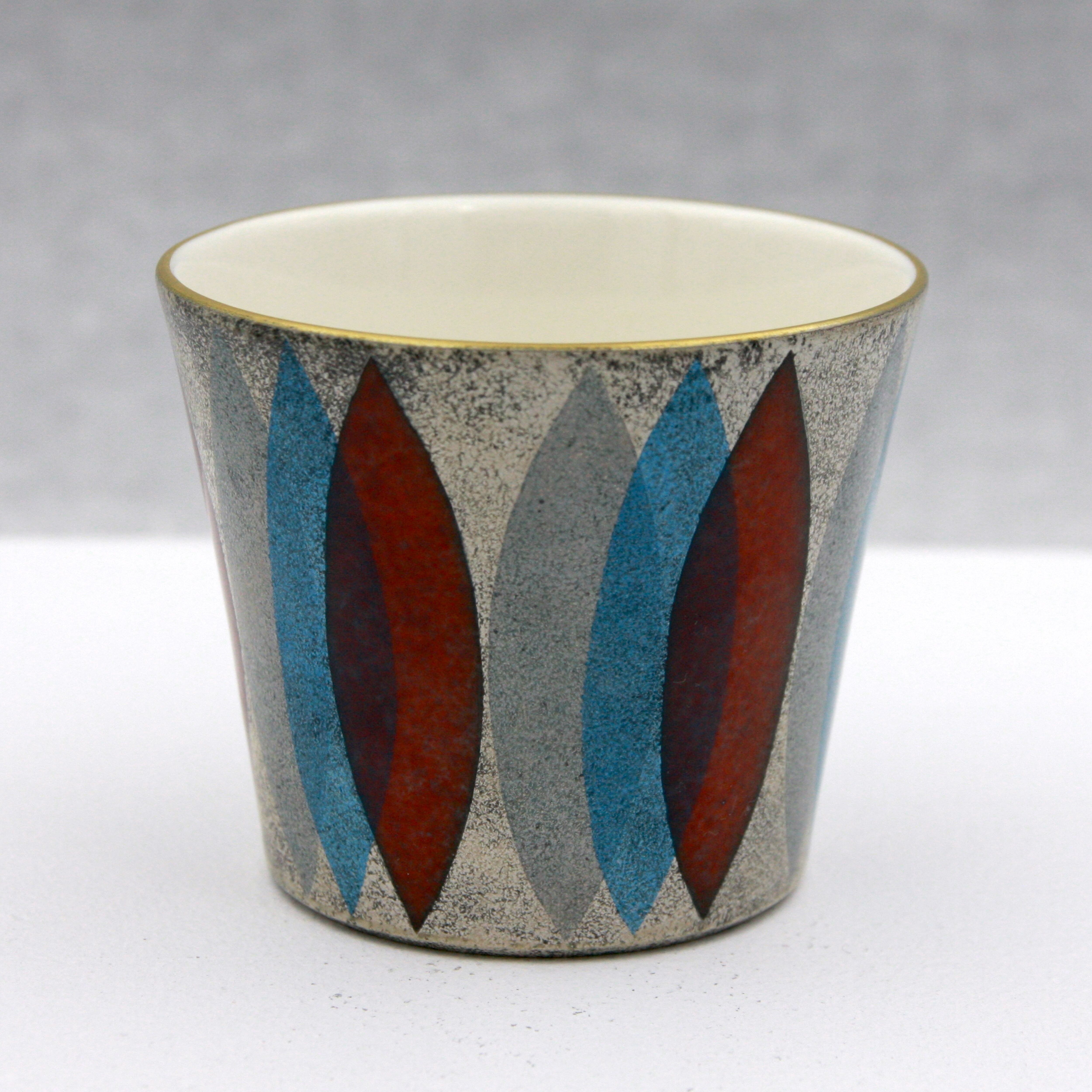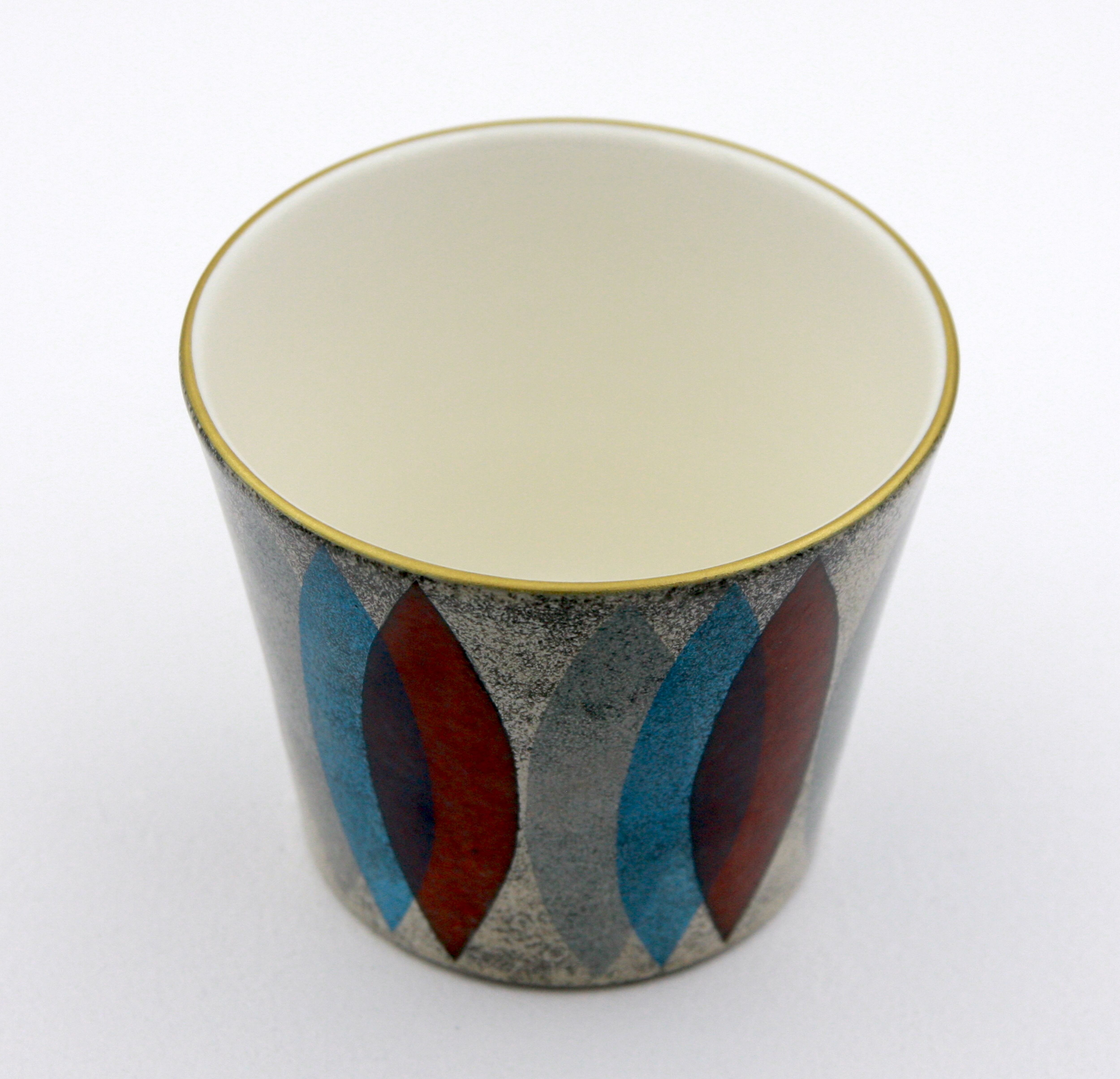 ロックやお湯割りなど焼酎を楽しむ器です。そば猪口や向付、湯呑など多岐にわたりお使いいただけます。桐箱付なので贈答品としても喜ばれます。模様は、色の数だけ何度も焼成することで表現されています。金銀彩を施し作品に重厚感を与えています。