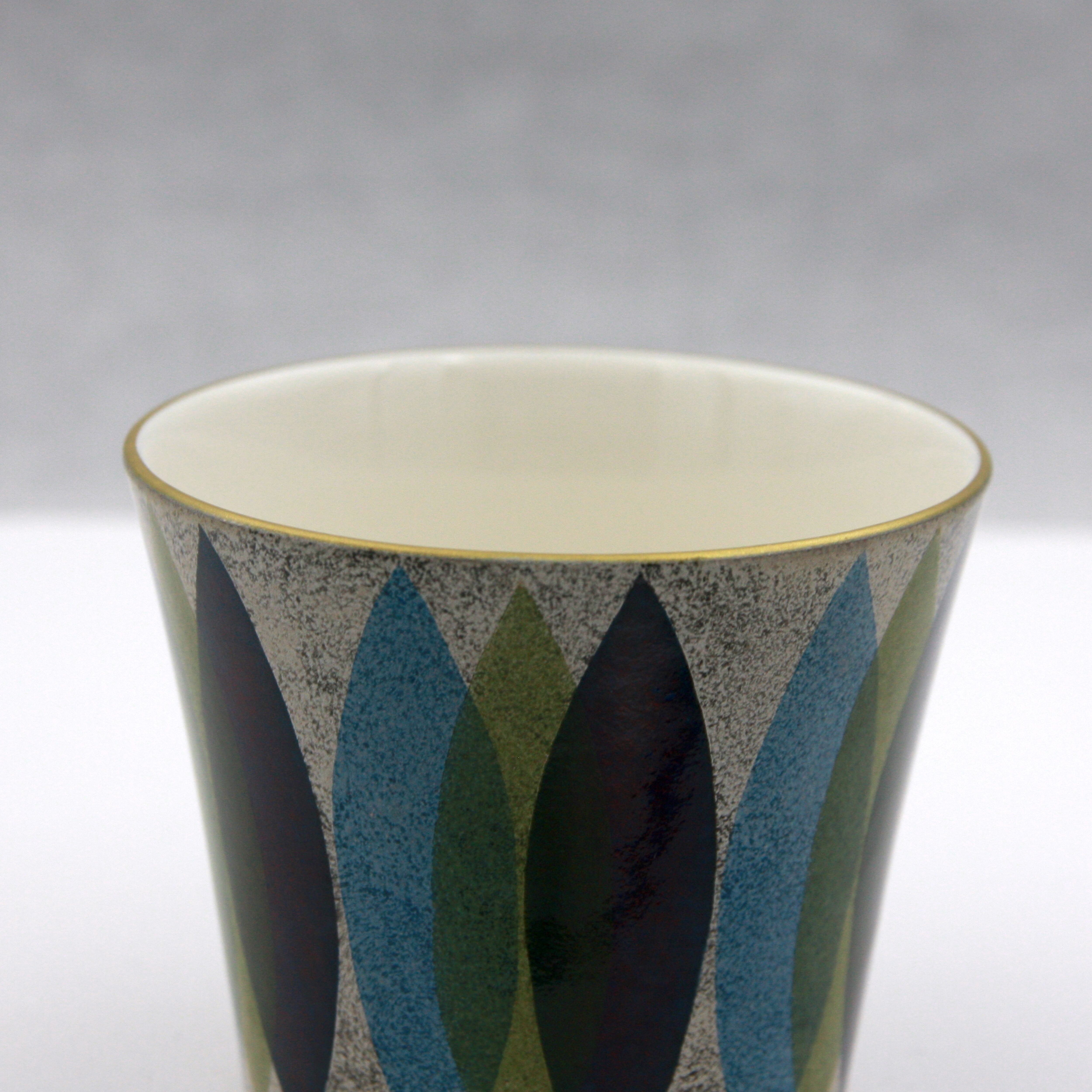 ロックやお湯割りなど焼酎を楽しむ器です。そば猪口や向付、湯呑など多岐にわたりお使いいただけます。桐箱付なので贈答品としても喜ばれます。模様は、色の数だけ何度も焼成することで表現されています。金銀彩を施し作品に重厚感を与えています。