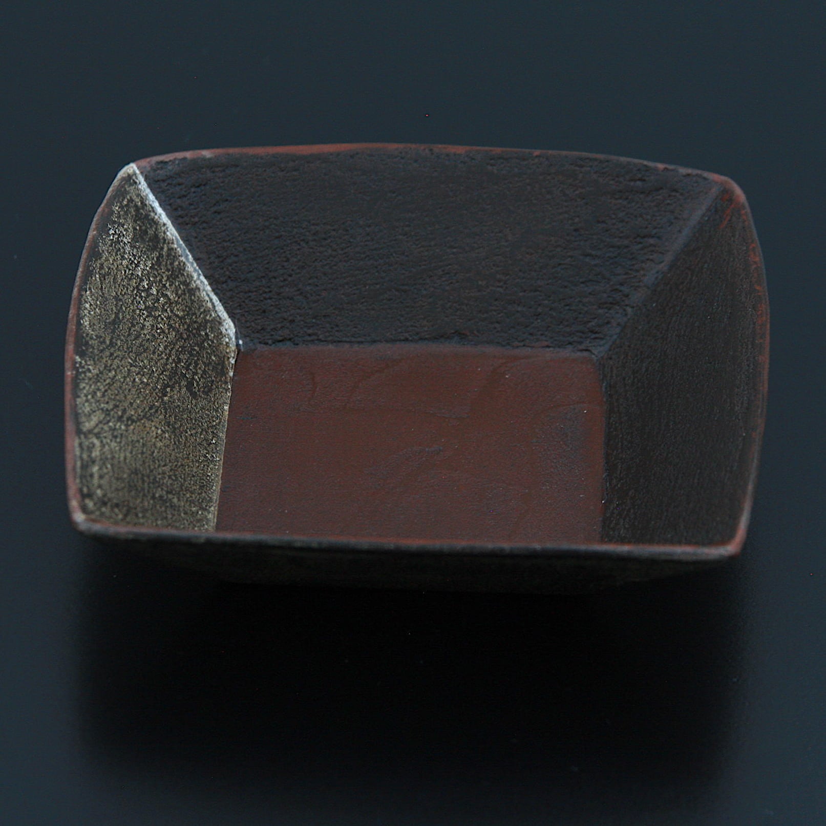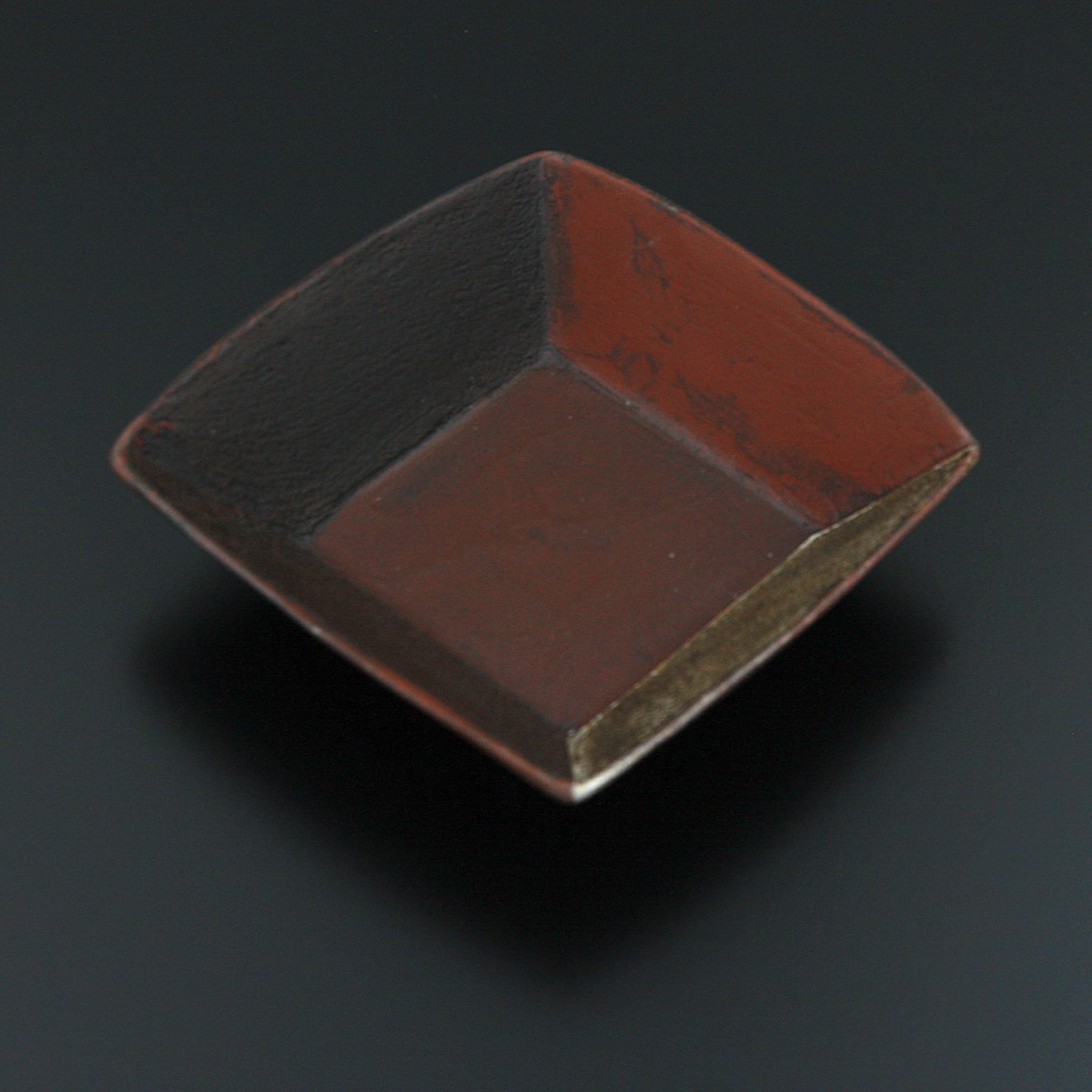 漆芸家、西山陽の乾漆しかく皿 (B)です。乾漆しかく皿 (A)よりひと回り大きいです。