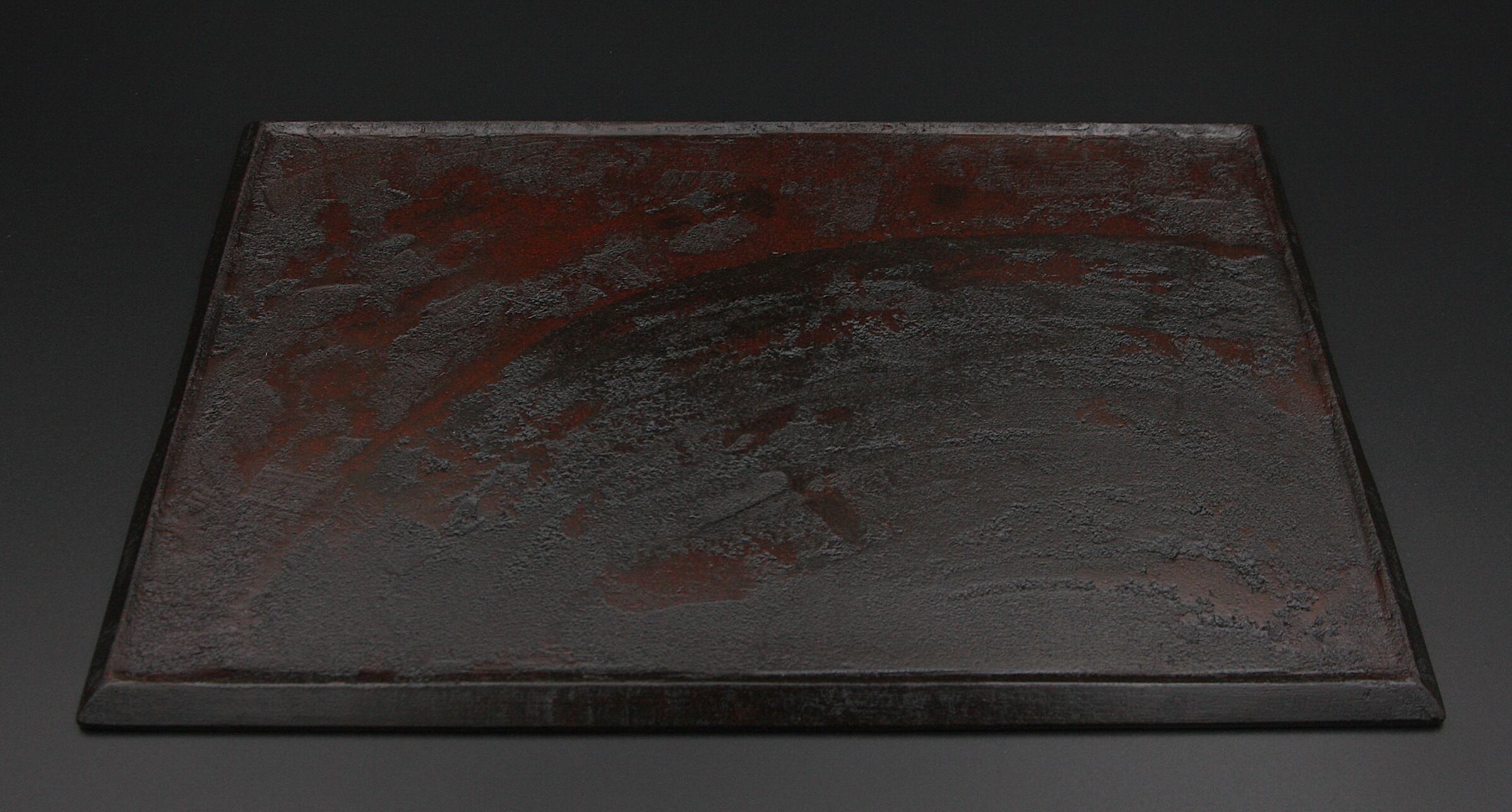 ワンプレートで食事を並べたり、お菓子を並べたり、お盆としてなど様々な使い方ができる使いやすいサイズです。まるで陶器のような、金属のような、木目のような、一見すると漆には見えない質感です、粗めの肌質で赤茶色と黒を基調とした仕上げです。漆器を使ったことがない方や傷ついてしまわないか不安な方には特にオススメです。厚みも8mmと薄く、重ねられるので収納にも困らない人気のシリーズです。絵柄は全部で4種類あります。