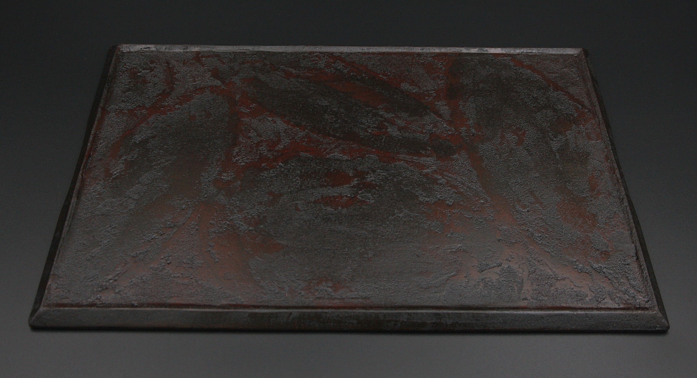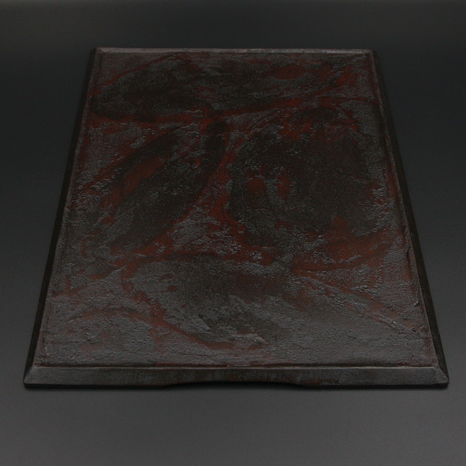 ワンプレートで食事を並べたり、お菓子を並べたり、お盆としてなど様々な使い方ができる使いやすいサイズです。まるで陶器のような、金属のような、木目のような、一見すると漆には見えない質感です、粗めの肌質で赤茶色と黒を基調とした仕上げです。漆器を使ったことがない方や傷ついてしまわないか不安な方には特にオススメです。厚みも8mmと薄く、重ねられるので収納にも困らない人気のシリーズです。絵柄は全部で4種類あります。