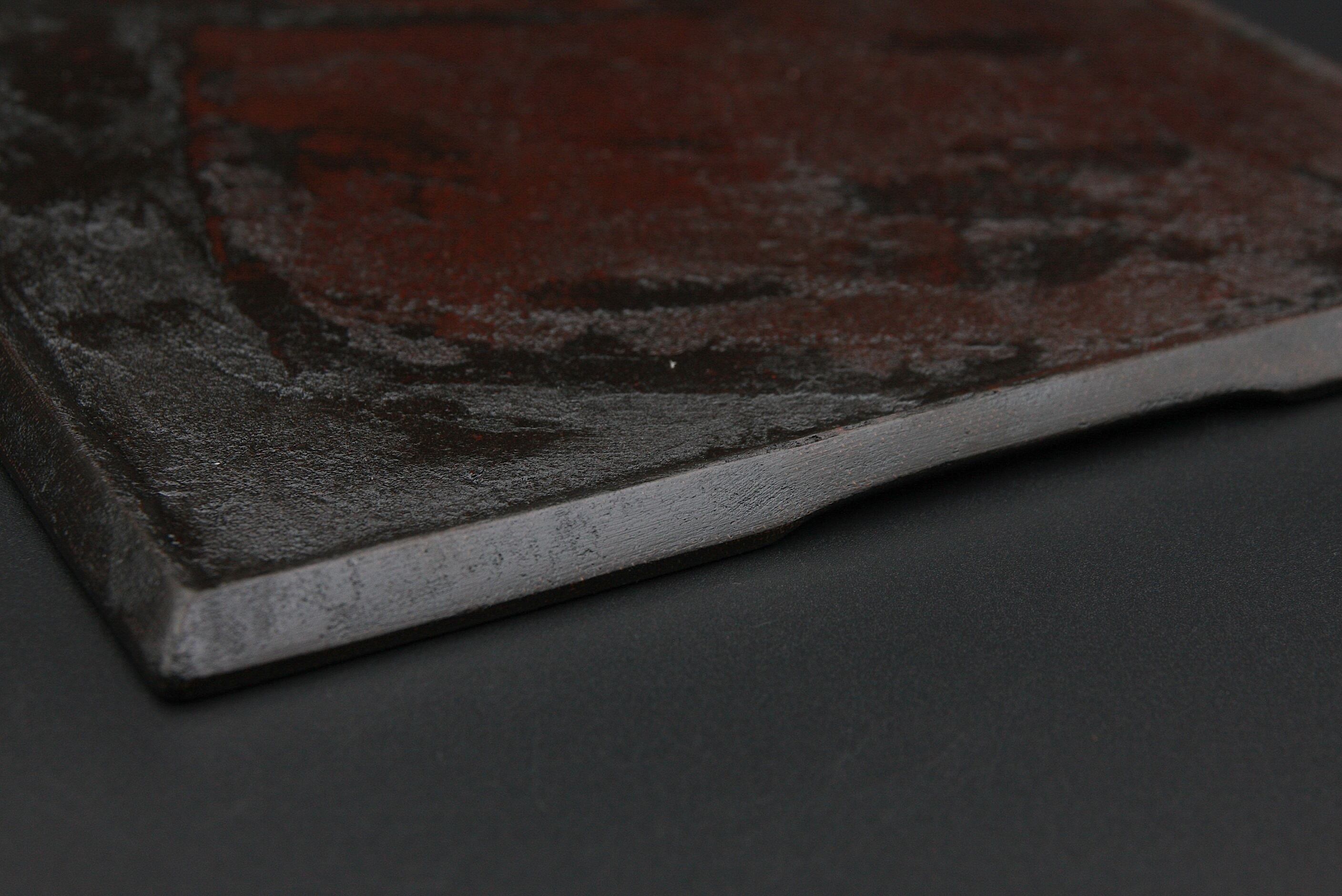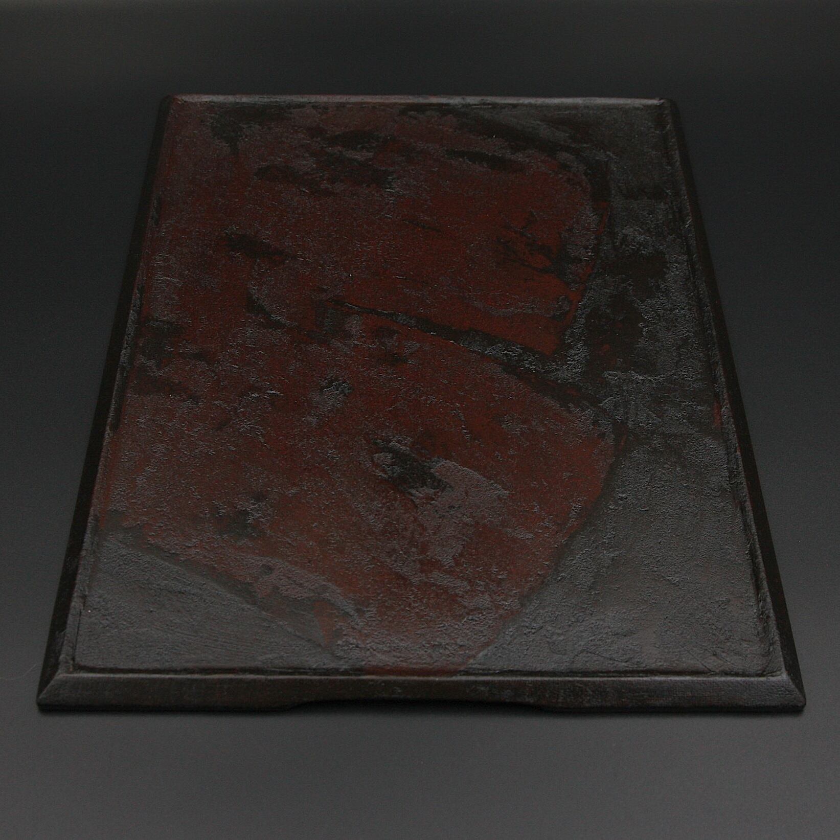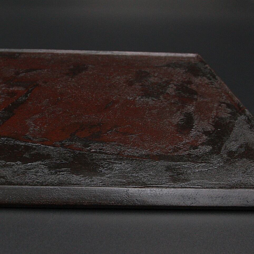 ワンプレートで食事を並べたり、お菓子を並べたり、お盆としてなど様々な使い方ができる使いやすいサイズです。まるで陶器のような、金属のような、木目のような、一見すると漆には見えない質感です、粗めの肌質で赤茶色と黒を基調とした仕上げです。漆器を使ったことがない方や傷ついてしまわないか不安な方には特にオススメです。厚みも8mmと薄く、重ねられるので収納にも困らない人気のシリーズです。絵柄は全部で4種類あります。